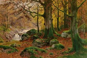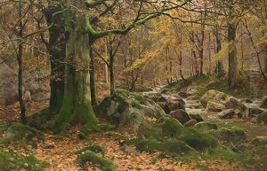 Herbstliche Waldlandschaft Mit Sprudelndem Bachlein