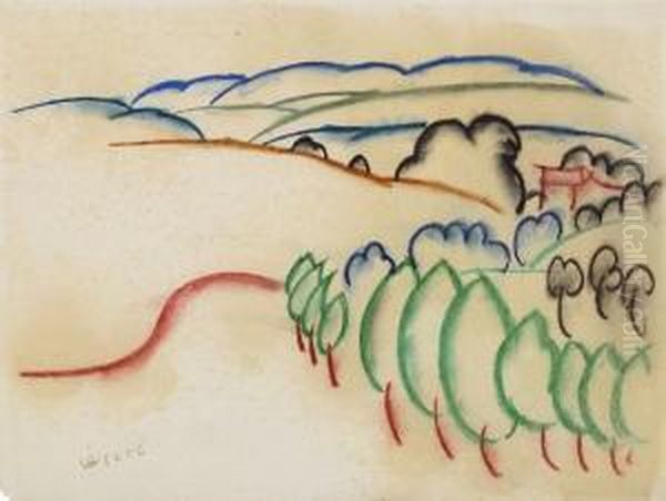 Ohne Titel (hugellandschaft Mit Hausern Im Hintergrund)