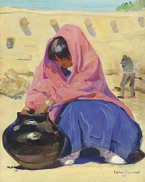 Bring the timeless beauty of Walter Ufer's Her Treasury Jar into your home with a handmade oil painting reproduction. Carefully recreated on canvas by skilled artists using traditional techniques, this piece captures the delicate brushwork, subtle light, and vibrant color of the original masterpiece. With museum-level quality and rich texture, it brings elegance and artistic depth to any space. Enjoy free shipping and make this masterpiece a part of your personal collection.