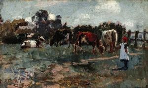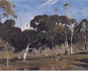 Walter Withers was an influential Australian landscape artist who was born on October 22, 1854, in Warwickshire, England. He emigrated to Australia in 1883, settling in Melbourne, and became a key figure in the Heidelberg School, a movement that is considered the first significant Western art movement in Australia. The Heidelberg School artists were known for their plein air method of painting, aiming to capture the unique Australian light and environment in their work.
