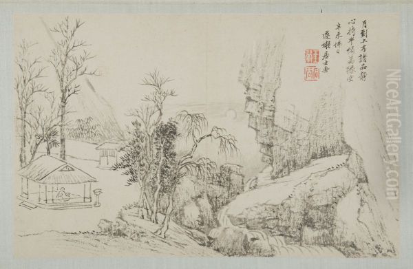 <<wang hui deng jiu jia shan shui ce-wang hui shan ting yue se ye>> Oil Painting by Wang Hui