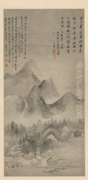 <<wang hui fang gao ke gong yun shan zhou>> Oil Painting by Wang Hui