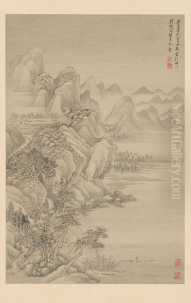 <<wang hui fang gu shan shui ce>> Oil Painting by Wang Hui