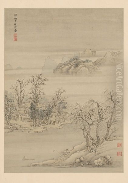 <<wang hui fang gu shan shui ce>> Oil Painting by Wang Hui