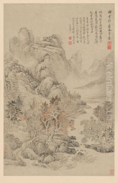 <<wang hui fang gu shan shui ce>> Oil Painting by Wang Hui
