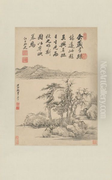 <<wang hui shu lin yuan xiu tu zhou>> Oil Painting by Wang Hui