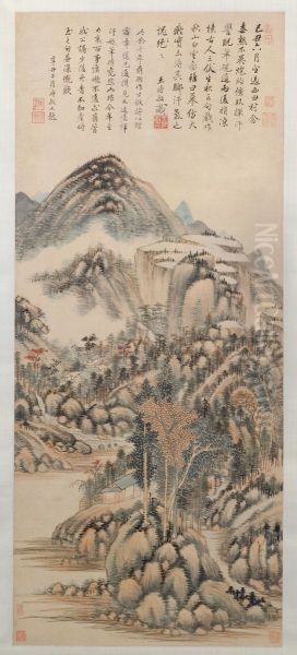 <<wang shi min qiu shan bai yun tu zhou>> Oil Painting by Wang Shimin