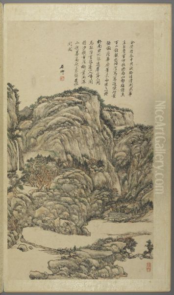 <<wang yuan qi fang gu shan shui ce>> Oil Painting by Wang Yuanqi