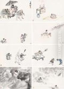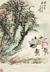 A Set Of Four Hanging Scrolls, Ink Or Ink And Color On Paper