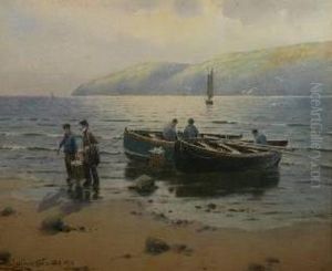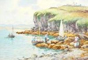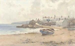 Cottages At Cemaes With Girl Feeding Chickens And Boats In The Distance
