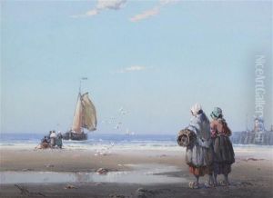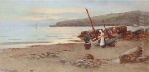 An Anglesey Coast, With Fisherfolk On Theshore