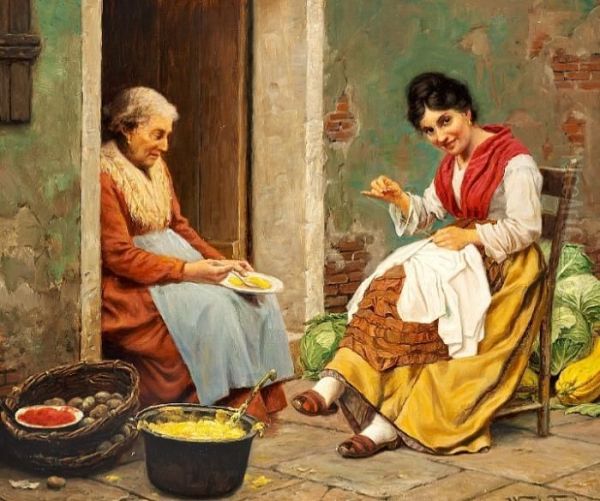 Tornoe: Two Italian Women Sitting In Front Of An Old House