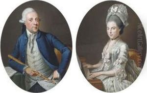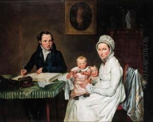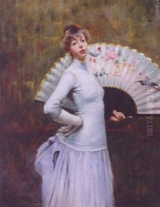 Portrait Of A Lady, Half-length, In A Turquoise, Lace-edged Dress And White Gloves, Holding A Fan