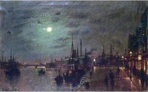Fl. -, Harbour Scene At Night, Oil On Canvas, 42 By 61 Cm.; 16i By 24 In