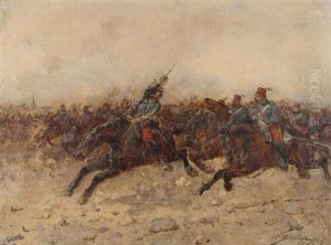 Charge Des Cuirassiers Francais Contre La Cavalerie Prussienne. Guerre De 1870.