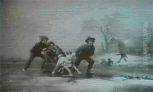 Kinder Mit Ihrem Pferdezugschlitten An Einem Zugefrorenen Flussbett