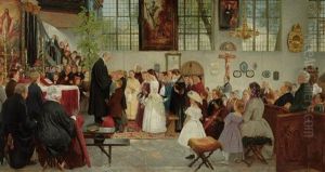 Wilhelm August Stryowski, also known as Wilhelm August Stryjowski, was a Polish painter born on September 18, 1834, in Gdańsk, which at the time was part of the Kingdom of Prussia. He is best known for his genre scenes, portraits, and historical paintings. Stryowski's artistic journey began in his hometown, but his talent and ambition led him to pursue further art education.