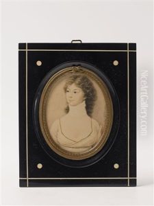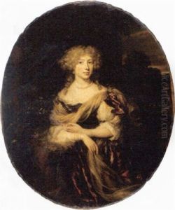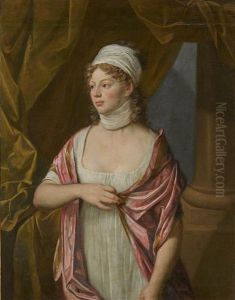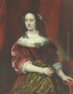 Portrait Of A Lady Wearing A Red Dress And A Grey Satin Shawl
