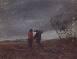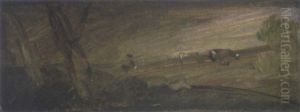 Gewitterlandschaft Mit Windmuhle Und Kuhhirtin