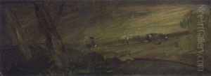 Landschaft Mit Waldrand, Feldstein Und Windmuhle