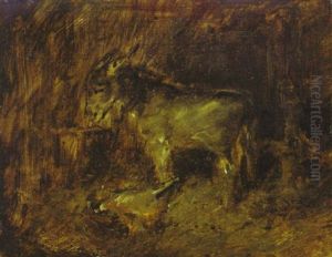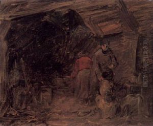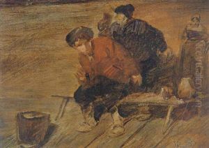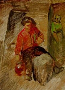 The Two Men Seated At A Table And Landscape With Cows