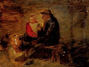 Bauer Am Tisch, Mit Krug Und Glas