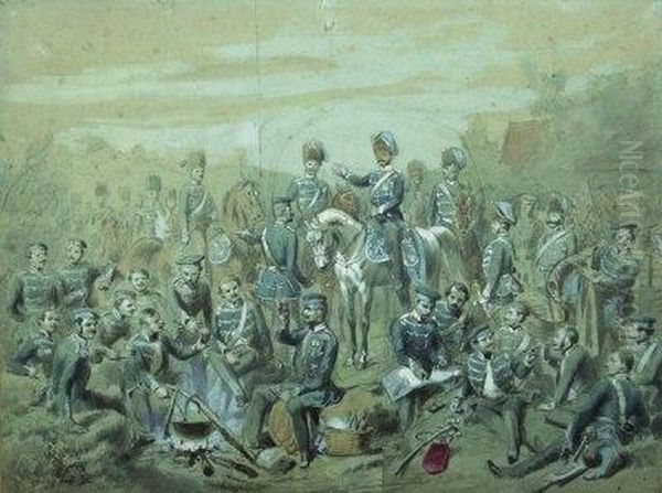 Ruckseitig Von Fremder Hand Bezeichnet: "crefelder Husaren Im Manover"