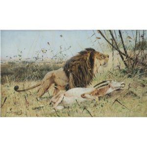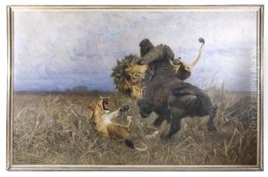 Lowenpaar Im Kampf Mit Einem Kaffernbuffel
