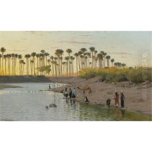 Buffel An Einer Wasserstelle In Der Savanne (a Water Buffalo At A Watering Hole In The Savannah)