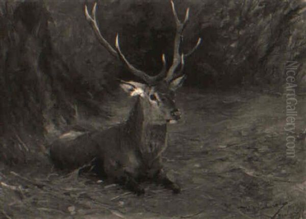 Ruhender Hirsch Oil Painting by Wilhelm Friedrich Kuhnert