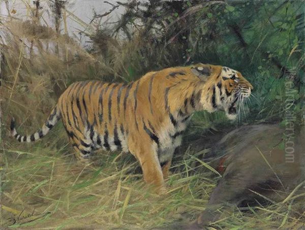 Bring the timeless beauty of Wilhelm Friedrich Kuhnert's Tiger And Its Prey into your home with a handmade oil painting reproduction. Carefully recreated on canvas by skilled artists using traditional techniques, this piece captures the delicate brushwork, subtle light, and vibrant color of the original masterpiece. With museum-level quality and rich texture, it brings elegance and artistic depth to any space. Enjoy free shipping and make this masterpiece a part of your personal collection.