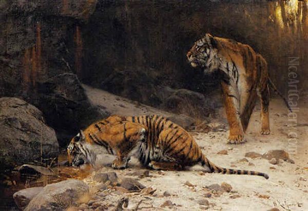 Bring the timeless beauty of Wilhelm Friedrich Kuhnert's Tigers At A Drinking Pool into your home with a handmade oil painting reproduction. Carefully recreated on canvas by skilled artists using traditional techniques, this piece captures the delicate brushwork, subtle light, and vibrant color of the original masterpiece. With museum-level quality and rich texture, it brings elegance and artistic depth to any space. Enjoy free shipping and make this masterpiece a part of your personal collection.