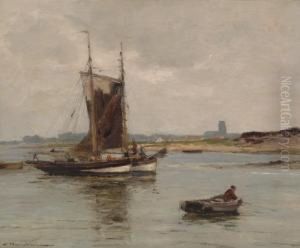 Ein Hollandischer Fischerhafen. Signiert Unten Rechts: W. Hambuchen. Ol Auf Leinwand. H 60; B 80 Cm.