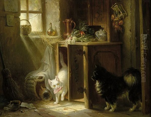 Bring the timeless beauty of Wilhelm Heinrich Schaumann's Ertappt - Bauernkuche Mit Spitz, Der Die Katze Beim Diebstahl Eines Bratens Aus Dem Vorratsschrank Erwischt into your home with a handmade oil painting reproduction. Carefully recreated on canvas by skilled artists using traditional techniques, this piece captures the delicate brushwork, subtle light, and vibrant color of the original masterpiece. With museum-level quality and rich texture, it brings elegance and artistic depth to any space. Enjoy free shipping and make this masterpiece a part of your personal collection.