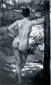 Junglingsakt. Monogrammiert Unten Links: W.t. Ol Auf Holz. H 81; B 41 Cm.