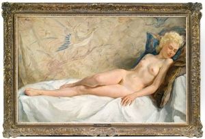 Liegender Weiblicher Akt Vor Einem Spiegel