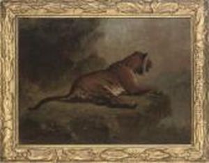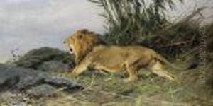 Ein Lowe Und Eine Lowin Vor Der Hohle. Signiert Unten Links: Wilh. Kuhnert. Verso Vom