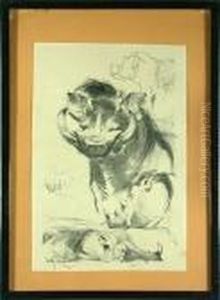 Beberlowe (berber Lion), And A Sheet Of Pencil Sketches Of Lions