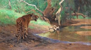 Bring the timeless beauty of Wilhelm Kuhnert's The Watchful Tiger into your home with a handmade oil painting reproduction. Carefully recreated on canvas by skilled artists using traditional techniques, this piece captures the delicate brushwork, subtle light, and vibrant color of the original masterpiece. With museum-level quality and rich texture, it brings elegance and artistic depth to any space. Enjoy free shipping and make this masterpiece a part of your personal collection.