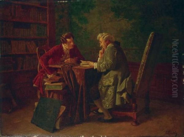Bring the timeless beauty of Wilhelm Lowith's Konversation Zweier Herren In Einer Bibliothek. into your home with a handmade oil painting reproduction. Carefully recreated on canvas by skilled artists using traditional techniques, this piece captures the delicate brushwork, subtle light, and vibrant color of the original masterpiece. With museum-level quality and rich texture, it brings elegance and artistic depth to any space. Enjoy free shipping and make this masterpiece a part of your personal collection.