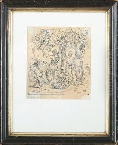 A Venetian Woman By The Window. Unsigned. Inscribed Verso W. Marstrand. Drawing Ink On Paper. Sheet Size 12 X 10 Cm