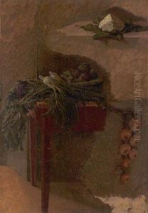 Siddende Italienerinde Med Rodt Hovedtorklaede