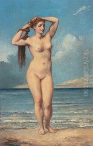 Kunstnerens Hustru Margrethe Med Et Af Bornene Pa Skodet