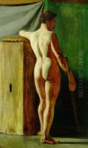 Interior Med Staende Nogen Kvinde, I Baggrunden Ampfora