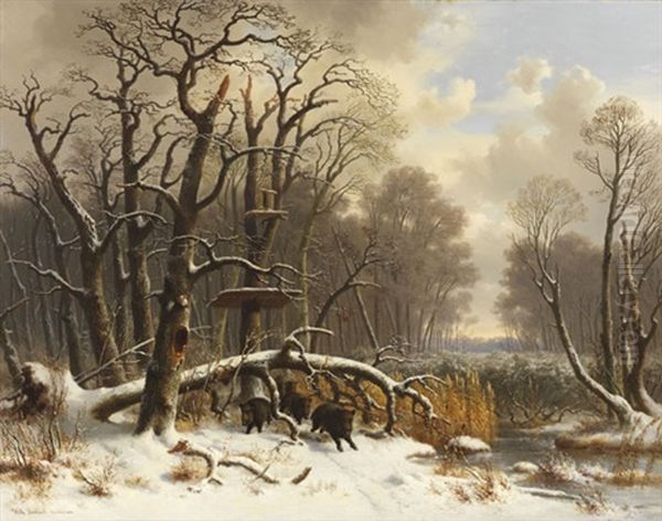 Bring the timeless beauty of Wilhelm Reinhardt's Wildschweinrotte Im Verschneiten Winterwald into your home with a handmade oil painting reproduction. Carefully recreated on canvas by skilled artists using traditional techniques, this piece captures the delicate brushwork, subtle light, and vibrant color of the original masterpiece. With museum-level quality and rich texture, it brings elegance and artistic depth to any space. Enjoy free shipping and make this masterpiece a part of your personal collection.