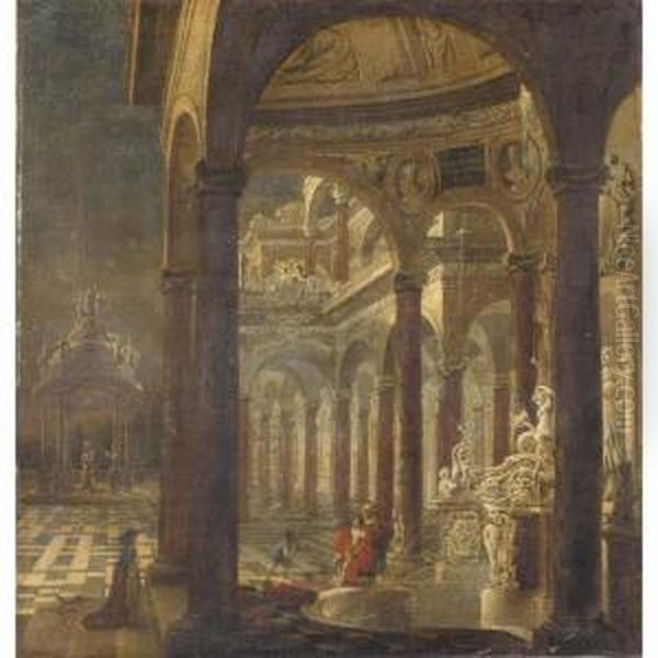 An Architectural Capriccio With Bathsheba Receiving The News Of The Death Of Her Husband Uriah The Hittite