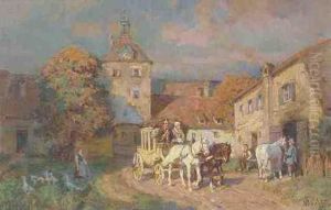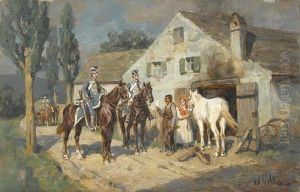 Reiter Im Gesprach Mit Einem Bauern Vor Dessen Gehoft.