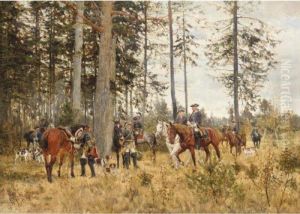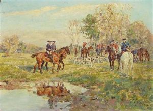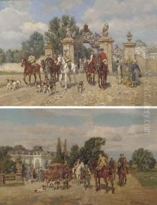 Aufbruch Zur Jagd Vor Schloss Sanssouci In Potsdam Bei Berlin