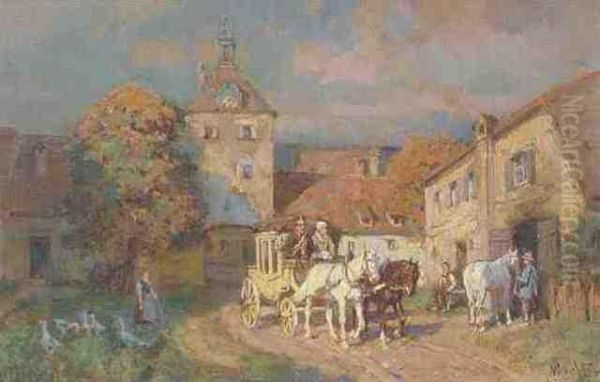 Postkutsche Auf Der Dorfstrasse