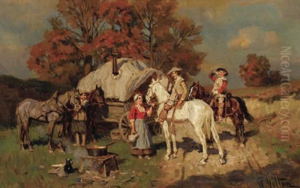Bring the timeless beauty of Wilhelm Velten's Stopping For A Drink At The Gypsy Camp into your home with a handmade oil painting reproduction. Carefully recreated on canvas by skilled artists using traditional techniques, this piece captures the delicate brushwork, subtle light, and vibrant color of the original masterpiece. With museum-level quality and rich texture, it brings elegance and artistic depth to any space. Enjoy free shipping and make this masterpiece a part of your personal collection.